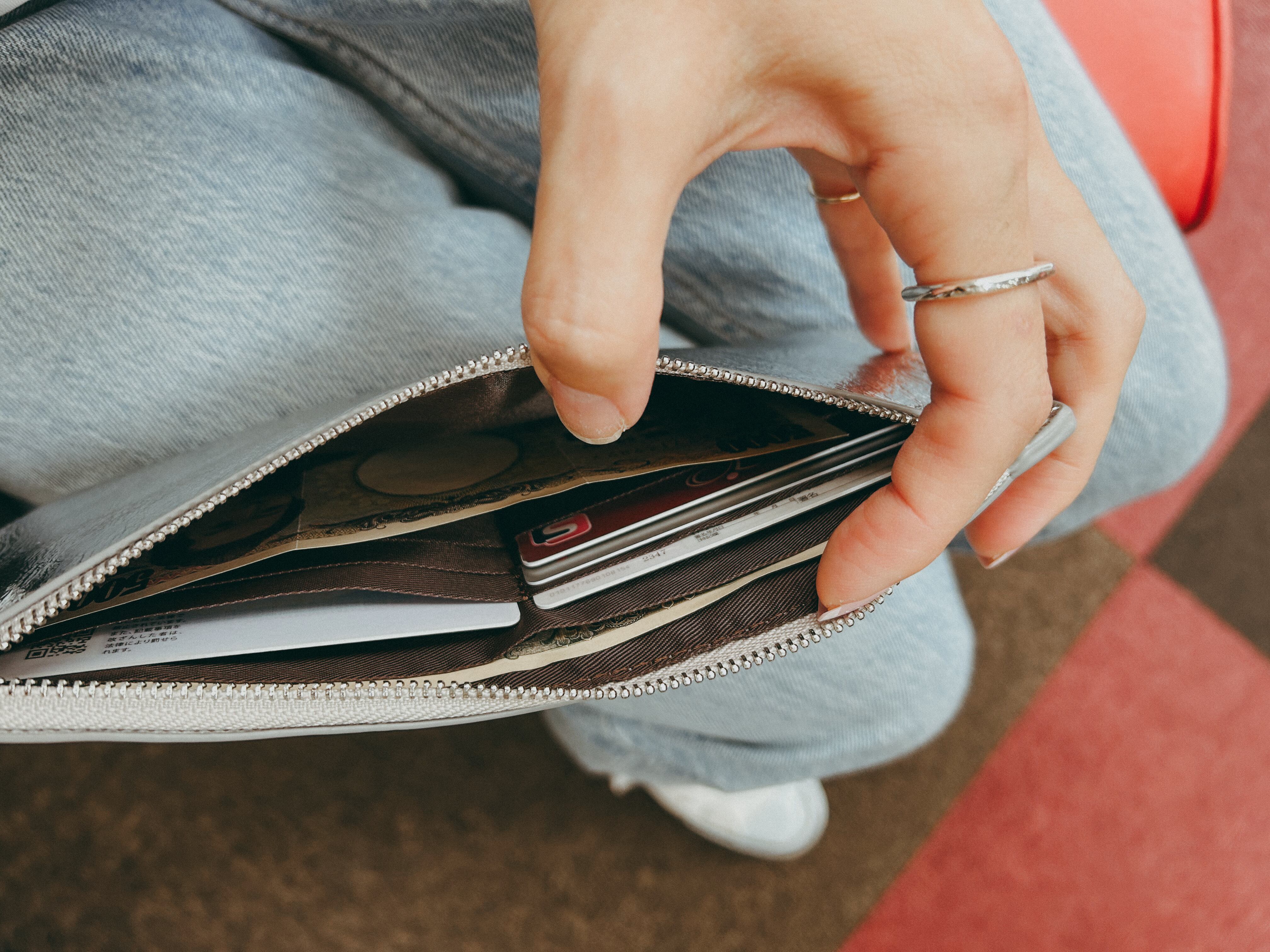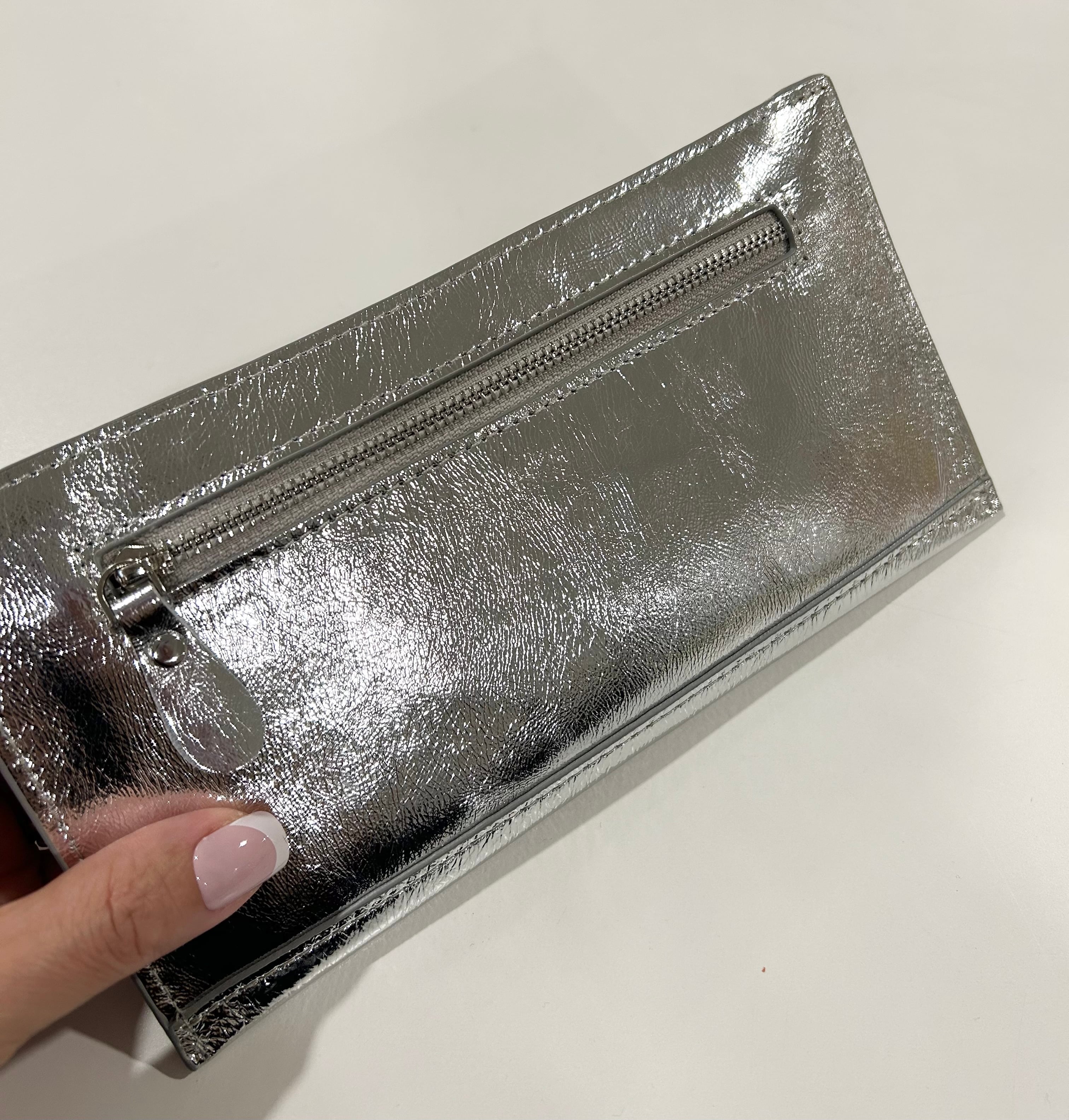 煌めきシルバーのスリム財布