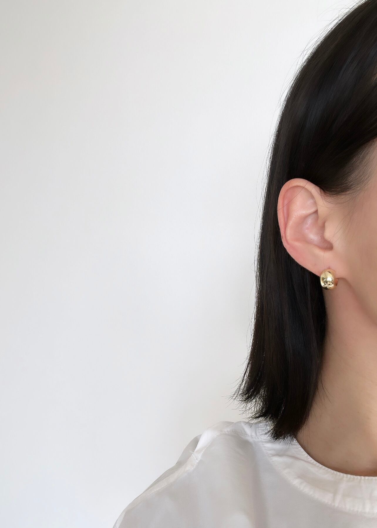 このピアスは、ふっくらとしたデザインが特徴で、耳元に適度なボリューム感を与えてくれます。